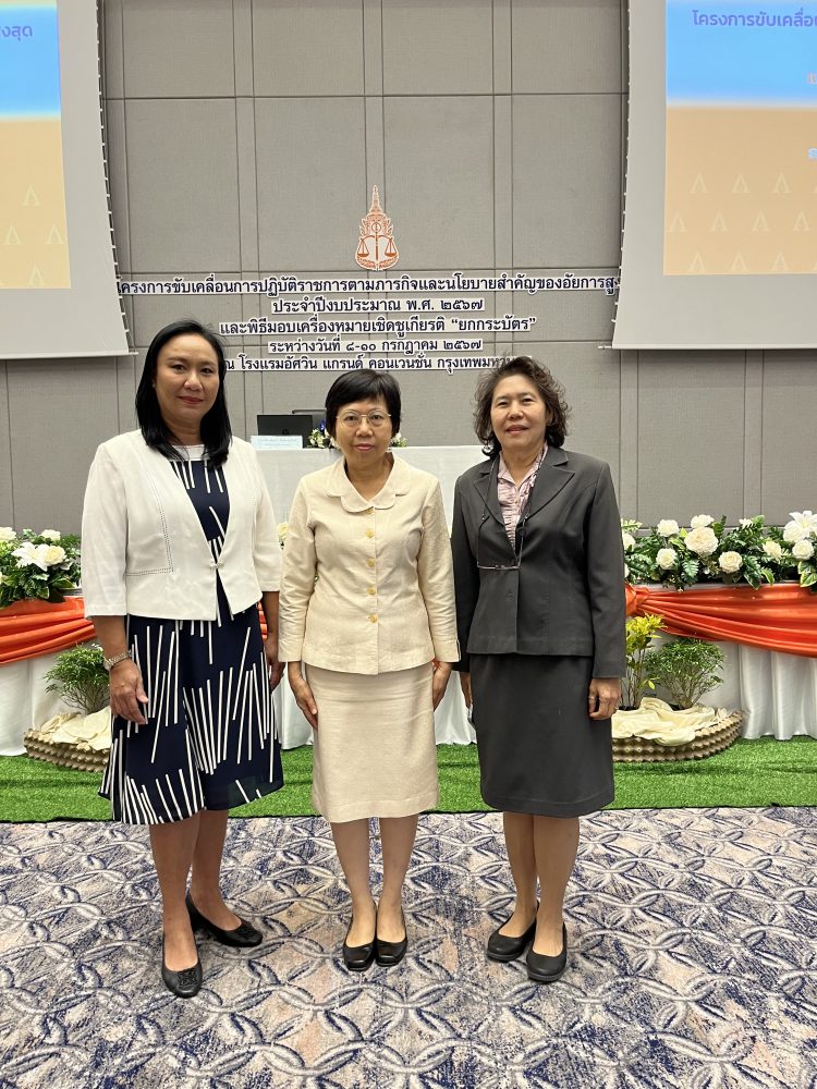 นางสุรีย์ บุญไพศาล อธิบดีอัยการ สำนักงานคดีล้มละลาย พร้อมด้วยนางวลัยรัตน์ บุญประสงค์ และนางสาวอาภาภรณ์ บูรณะกนิษฐ์ รองอธิบดีอัยการ สำนักงานคดีล้มละลาย เข้ารับเครื่องหมายเชิดชูเกียรติ “ยกกระบัตร” ซึ่งเป็นสัญลักษณ์แห่งเกียรติยศและความภาคภูมิใจให้บุคลากรและผู้ที่ทำคุณประโยชน์แก่สำนักงานอัยการสูงสุด ณ โรงแรมอัศวิน แกรนด์ คอนเวนชั่น กรุงเทพมหานคร เมื่อวันที่ 8 กรกฎาคม 2567 ที่ผ่านมา