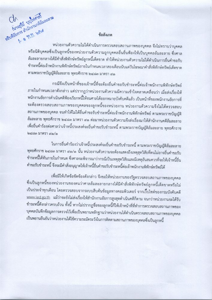 ข้อสังเกต การตรวจสอบสถานภาพบุคคลที่เป็นลูกหนี้