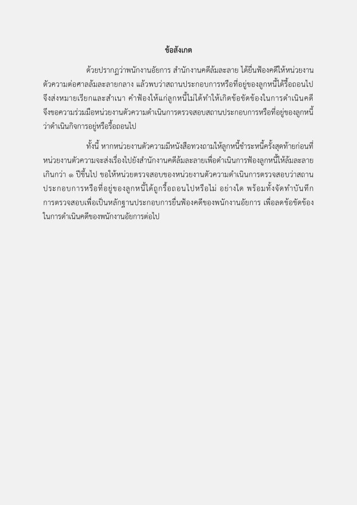 กรณีหน่วยงานตัวความส่งหนังสือทวงถามให้ลูกหนี้ชำระหนี้ครั้งสุดท้ายเกิน 1 ปีขึ้นไป ขอให้ตรวจสอบสถานประกอบการหรือที่อยู่