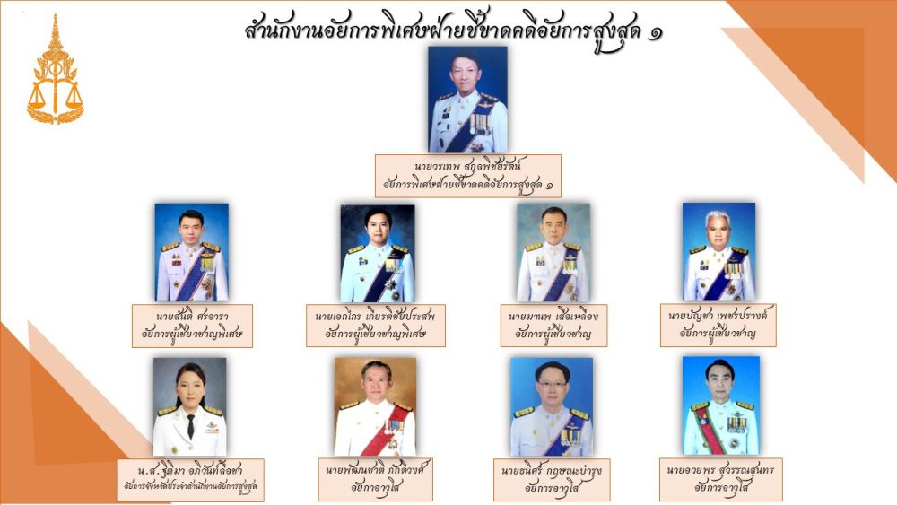 | สำนักงานอัยการพิเศษฝ่ายชี้ขาดคดีอัยการสูงสุด 1 | 0 2142 1517, 0 2142 3128 โทรสาร 0 2143 9187 ไปรษณีย์อิเล็กทรอนิกส์ dlag1@ago.go.th |