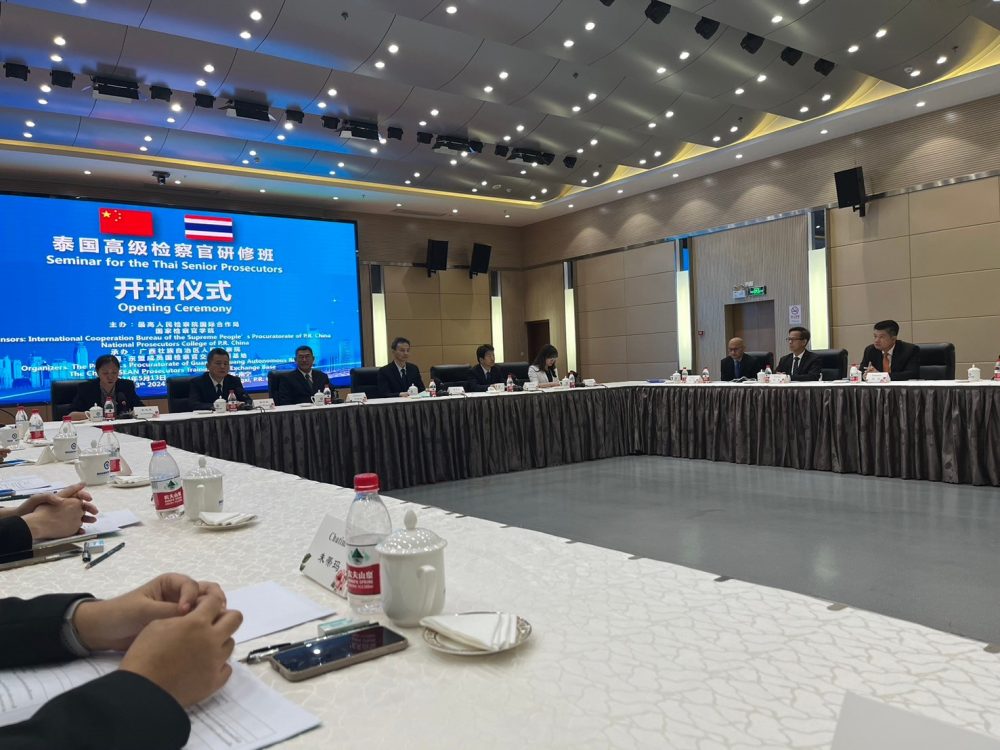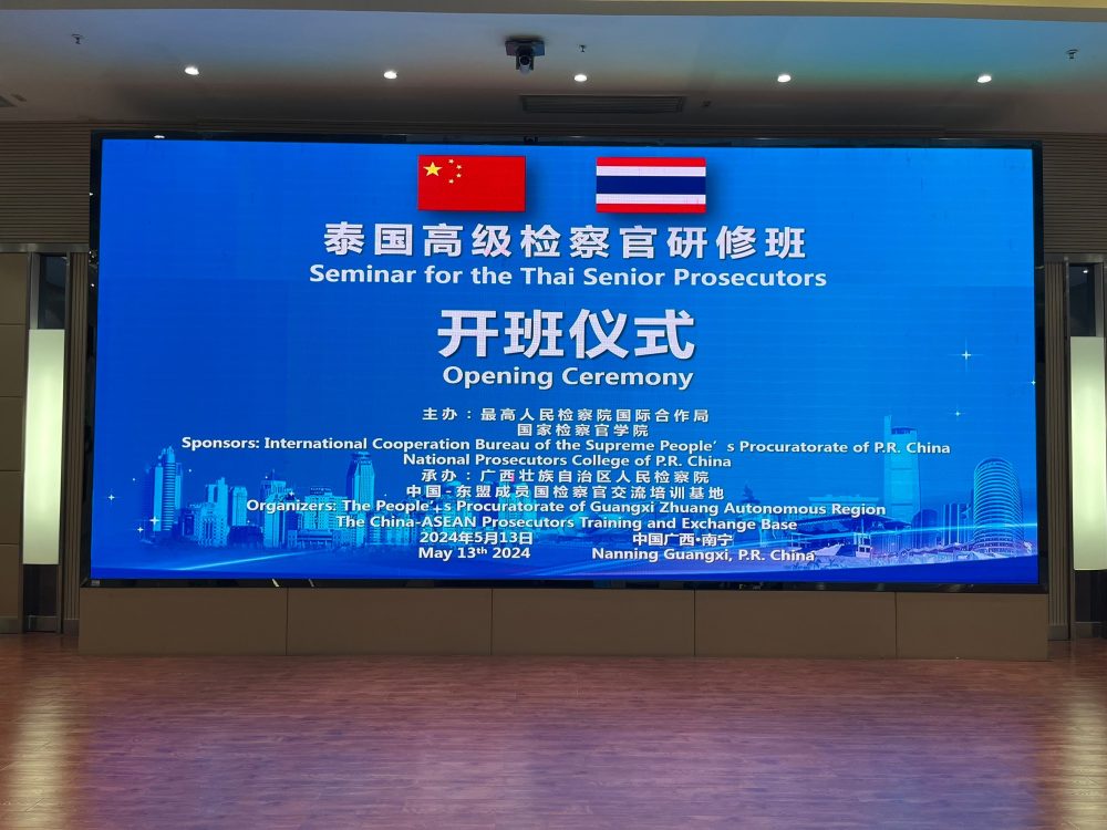 To implement the Joint Declaration of the 13th China-ASEAN Prosecutors-General Conference and to enhance cooperation and exchange between the Supreme People’s Procuratorate of the People’s Republic of China and the Office of the Attorney General of the Kingdom of Thailand, 13 Thai prosecutors from the Office of the Attorney General of Thailand participated in a 10-day training program. Led by Mr. Sathaporn Phakdeewong, Deputy Director General of the Department of Criminal Litigation, the delegation attended sessions on “Prosecutor’s Role in Combatting Telecom Fraud and Cybercrimes” at the China-ASEAN Prosecutors Exchange and Training Base in Nanning, Guangxi, China, from May 12 to 21, 2024.