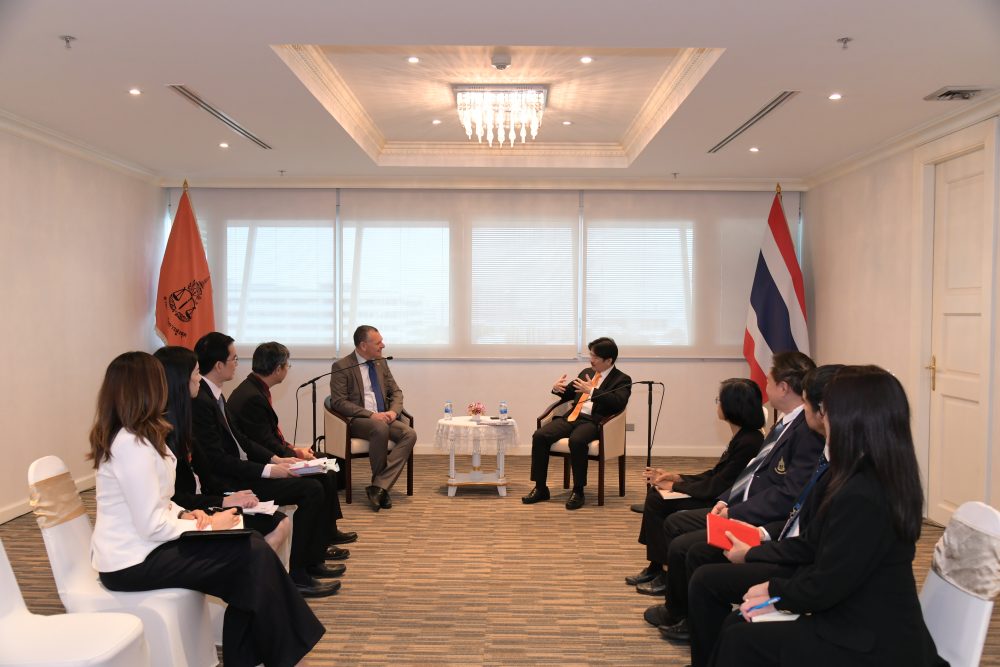 On 2 November 2023 at 10:30 hrs. Her Excellency Dr. Angela Macdonald, Ambassador of Australia to Thailand, paid a courtesy call on Mr.Amnat Chetcharoenrak, Attorney General of Thailand to congratulate him on his promotion to Attorney general of Thailand and initiate discussions concerning cooperation between Australia and Thailand in the framework of Australia –Thailand Strategic Partnership.