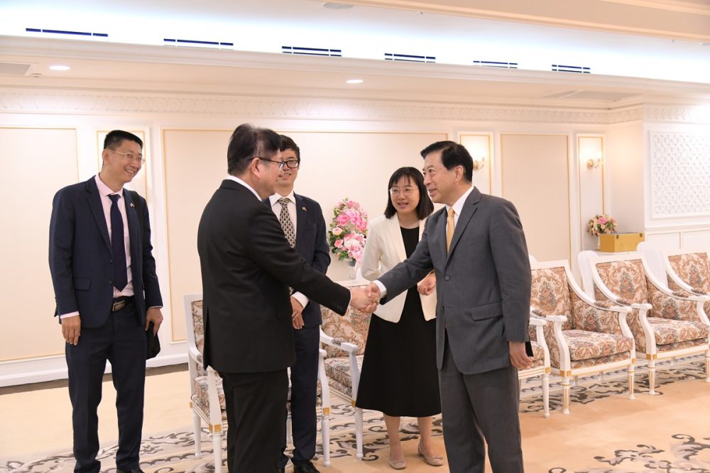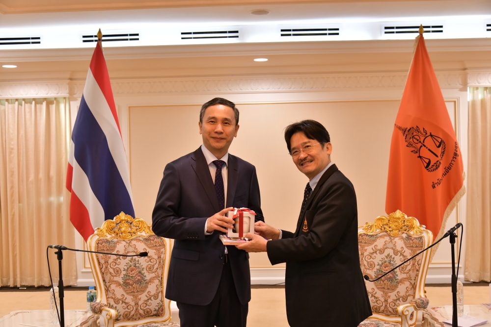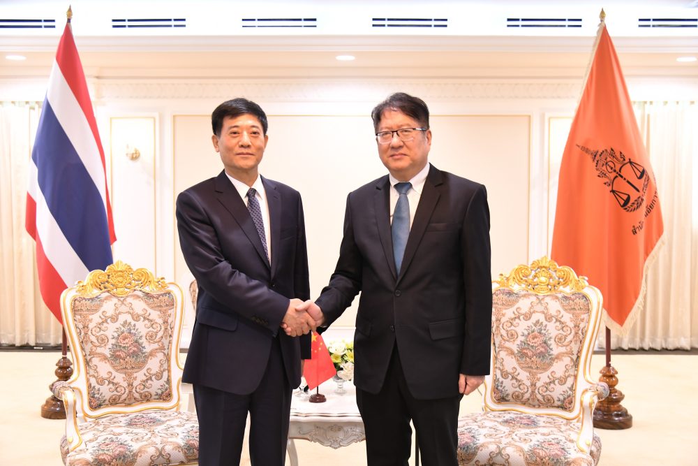 On November 3, 2023, His Excellency Dr.Han Zhiqiang Ambassador of the People’s Republic of China to Thailand, paid a courtesy call on Mr. Amnat Chetcharoenrak, Attorney General of Thailand. The purpose of this meeting was convened to discuss the ongoing relationship and to explore opportunities for further enhancing relations and cooperation in criminal matters and extradition.