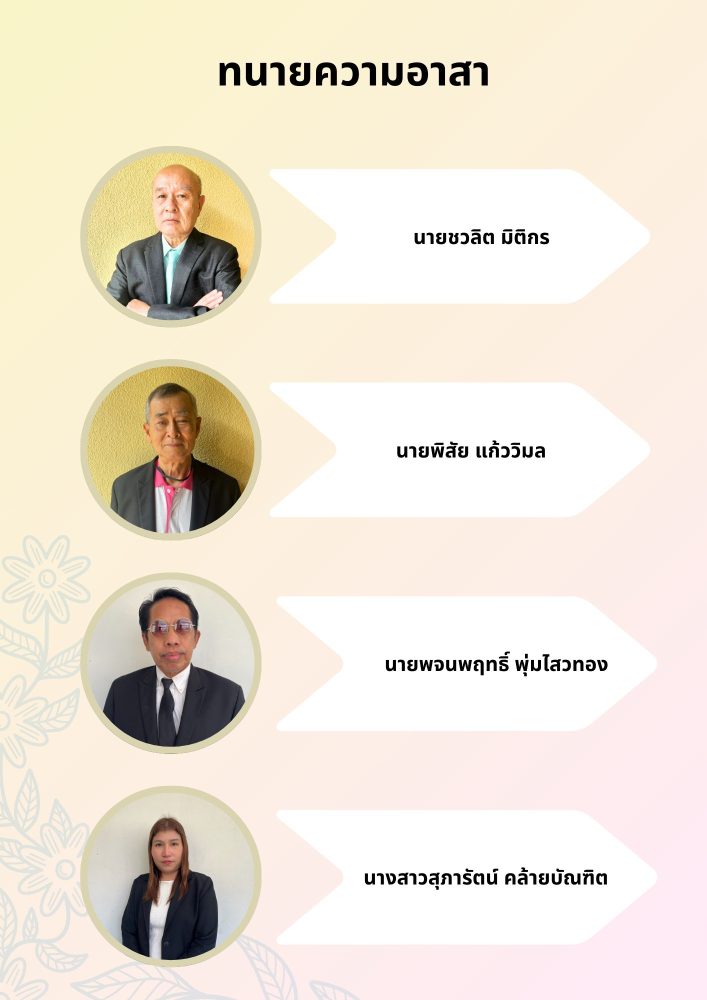 - ค่าธรรมเนียมศาล 1,500 บาท หากมีค่าใช้จ่ายเพิ่มเติมทนายความผู้รับผิดชอบจะแจ้งให้ผู้ร้องทราบ