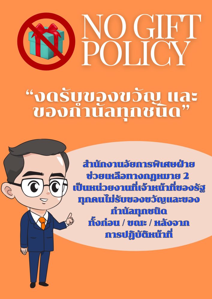 เรื่อง ไม่รับของขวัญและของกำนัลทุกชนิดจากการปฏิบัติหน้าที่ (No Gift Policy)
