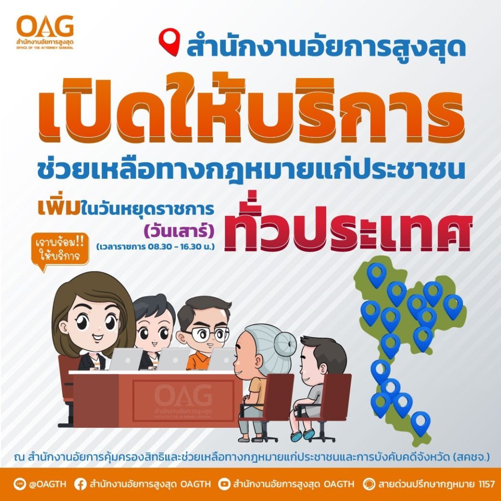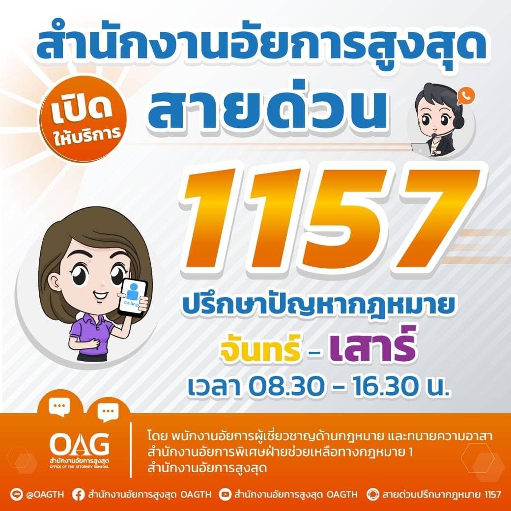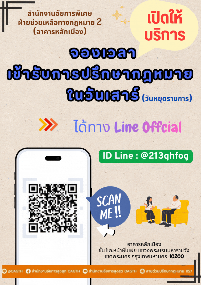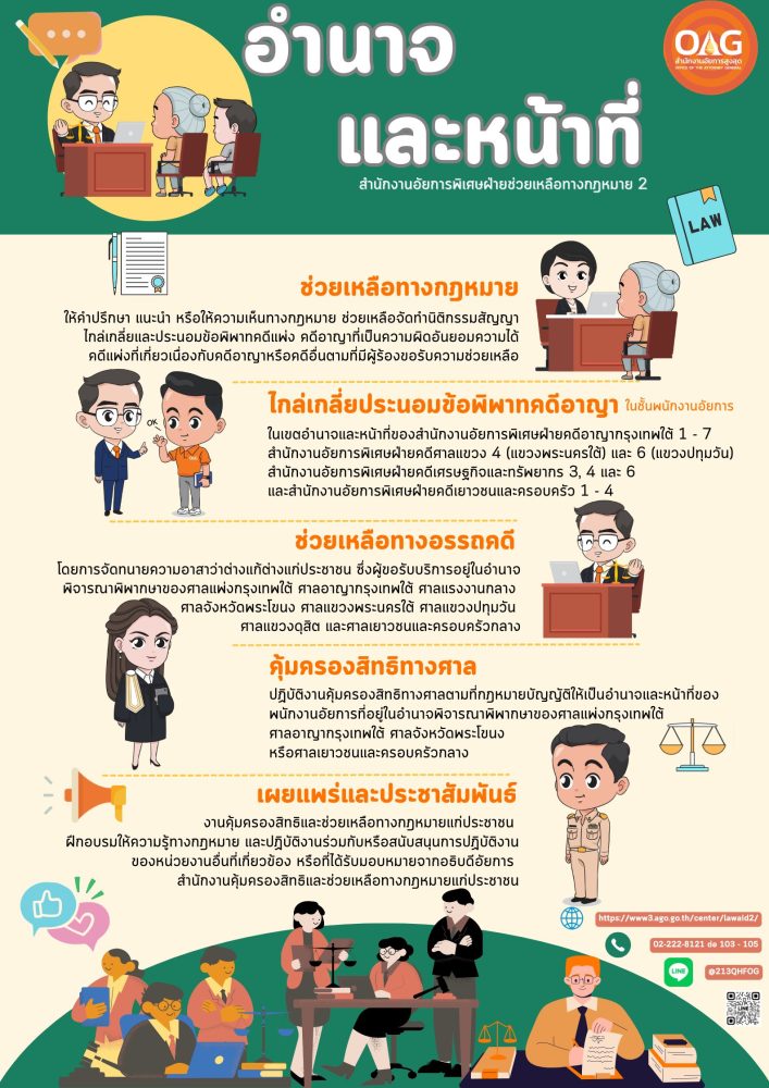 โทรศัพท์ 0 2222 8121 ต่อ 102 – 105 โทรสาร 0 2222 5033 E-mail : lawaid2@ago.go.th LineOfficial : @213qhfog