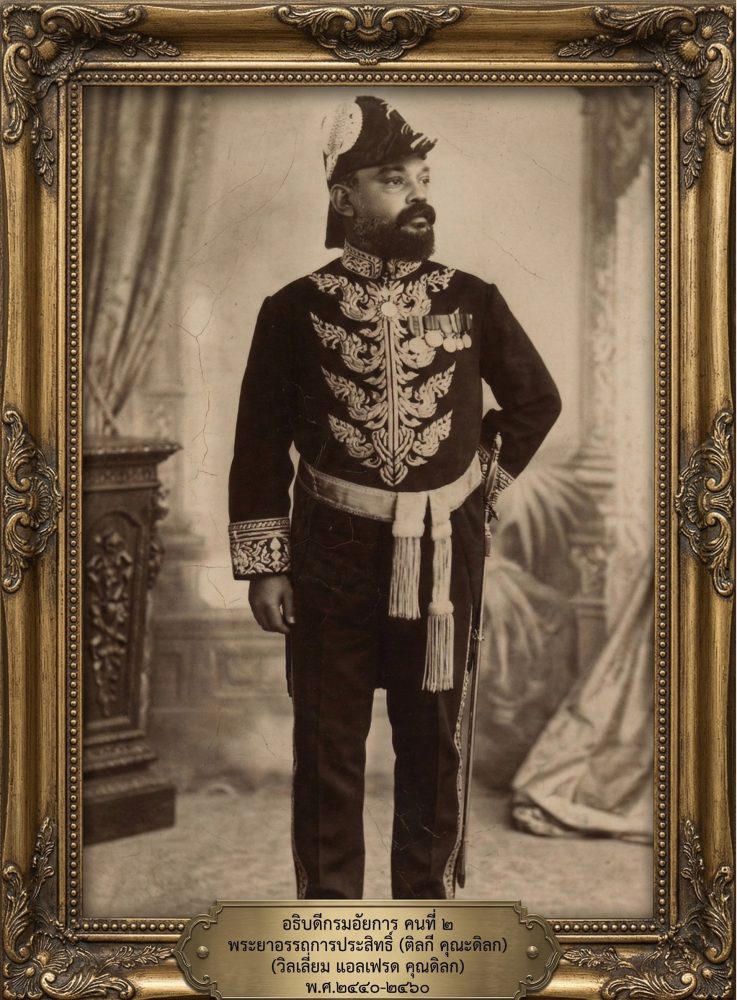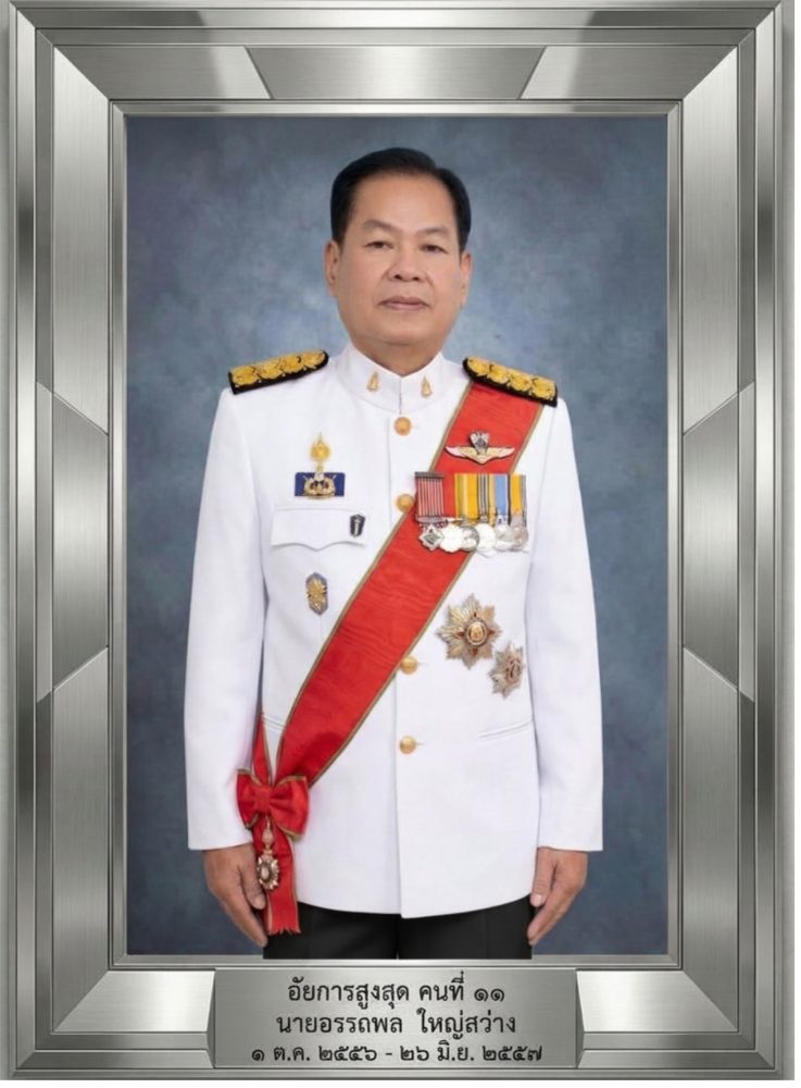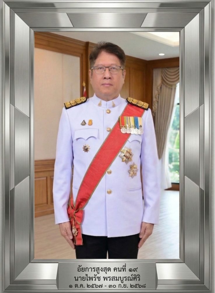 และตราชูรูปพระขรรค์ รองรับด้วยช่อชัยพฤกษ์