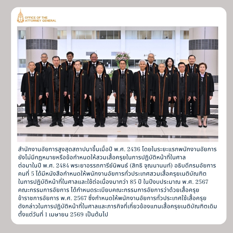 ใช้กับเครื่องแบบข้าราชการฝ่ายอัยการ ประกอบกับกฎหมายว่าด้วยระเบียบข้าราชการฝ่ายอัยการ ได้บัญญัติให้นำกฎหมาย ว่าด้วยระเบียบข้าราชการพลเรือน มาใช้บังคับกับข้าราชการธุรการของสำนักงานอัยการสูงสุด และกฎหมายว่าด้วยระเบียบข้าราชการพลเรือน ได้บัญญัติให้เครื่องหมายแบบข้าราชการพลเรือน เป็นไปตามกฎหมายว่าด้วย เครื่องแบบข้าราชการฝ่ายพลเรือน และโดยที่กฎหมายว่าด้วยเครื่องแบบข้าราชการฝ่ายพลเรือน ได้บัญญัติให้ การกำหนดเครื่องหมายแสดงสังกัด สำหรับใช้กับเครื่องแบบข้าราชการพลเรือน ต้องออกเป็นกฎสำนักนายกรัฐมนตรี