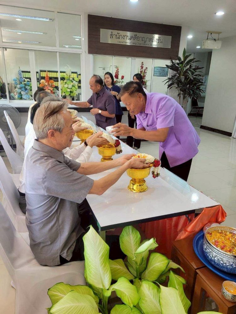 เมื่อวันที่ ๘ เมษายน ๒๕๖๘ เวลา ๙.๓๐ นาฬิกา นางประไพพรรณ จวติช อธิบดีอัยการ สำนักงานคดีอาญาตลิ่งชัน ประกอบพิธีเปลี่ยนเครื่องประดับศาลพระภูมิและศาลตายายเพื่อเป็นสิริมงคลแก่ผู้ปฏิบัติงานภายในอาคาร และเวลา ๑๓.๓๐ นาฬิกา สำนักงานคดีอาญาตลิ่งชัน สำนักงานคดีแพ่งตลิ่งชัน สำนักงานอัยการพิเศษฝ่ายภายในอาคาร และกลุ่มบริหารทั่วไปประจำอาคารตลิ่งชัน ได้ร่วมกันจัดงานสืบสานประเพณีสงกรานต์และแสดงกตัญญูต่อผู้สูงอายุ เพื่อต้อนรับการเปลี่ยนปีนักษัตรด้วยสิริมงคลโดยมีกิจกรรมสรงน้ำพระ และรดน้ำขอพรจากปูชนียบุคคลของสำนักงาน อัยการอาวุโส ตลอดจนผู้บริหารชุดปัจจุบัน ซึ่งเป็นการสืบสานประเพณีแห่งความกตัญญูให้ดำรงอยู่ต่อไปในสังคมไทย และสังคมข้าราชการที่ควรแสดงถึงความอ่อนน้อมถ่อนตนต่อผู้มีวัยวุฒิและคุณวุฒิที่สูงกว่า เป็นการเปิดโอกาสให้ได้รับคำพร รวมทั้งคำแนะนำจากปูชนียบุคคลผู้ทรงคุณค่าของหน่วยงานได้แก่ นายจุฬา ศัลยพงษ์ นายสมโภชน์ ลิ้มประยูร นายดุลยพิชัย มหาวีระ นายสมเกียรติ คุววัฒนานนท์ และนายสุเทพ กัณห์อุไร ซึ่งนางประไพพรรณ จวติช อธิบดีอัยการ สำนักงานคดีอาญาตลิ่งชัน ได้กล่าวขอบพระคุณผู้อาวุโสที่ให้เกียรติมาร่วมงาน ขอบคุณบุคลากรทุกท่านและทีมงานทุกฝ่ายที่ร่วมกันจัดกิจกรรมในครั้งนี้จนเป็นผลสำเร็จ