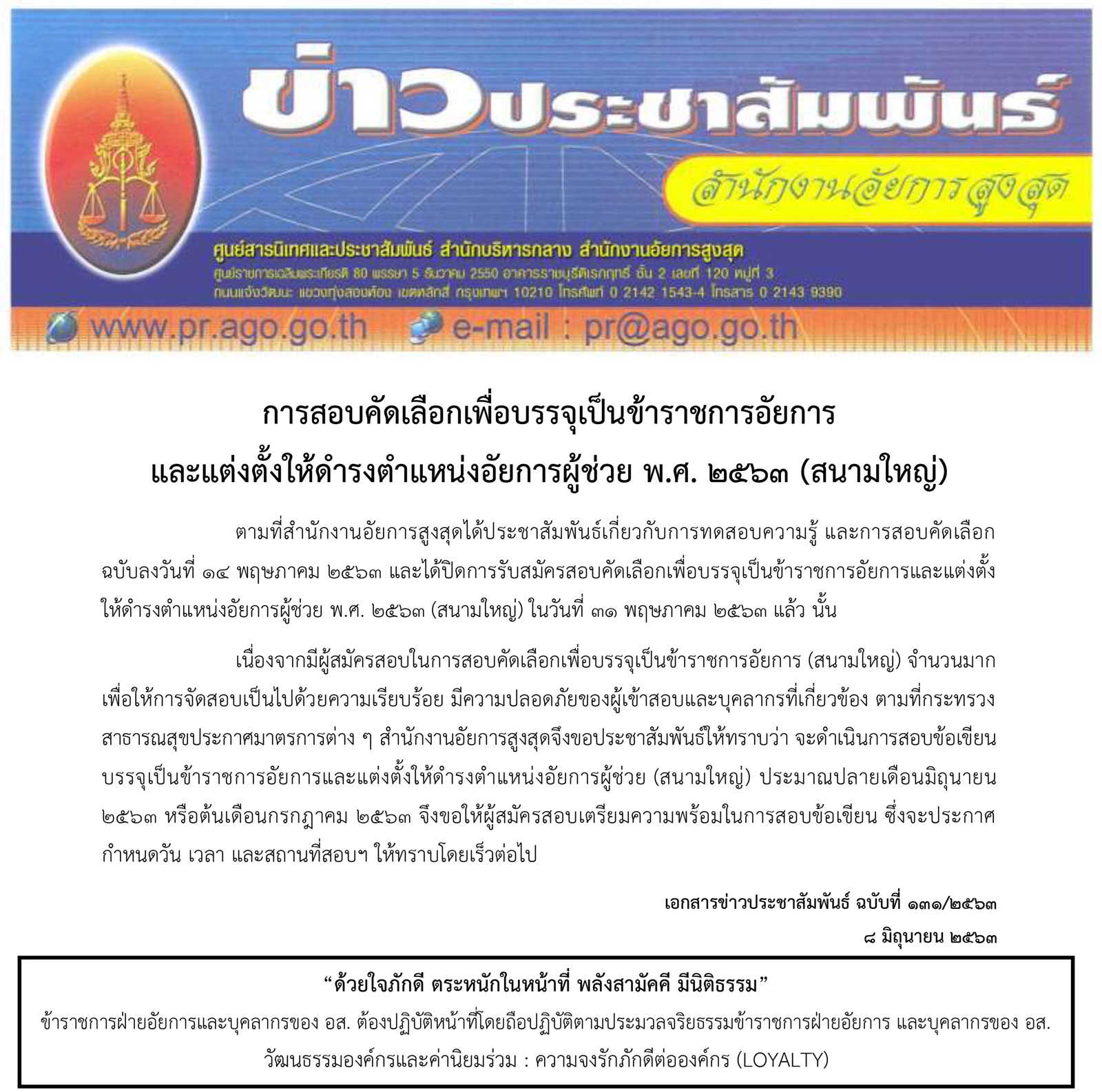 ประชาสัมพันธ์การประเมินผลการปฏิบัติราชการของข้าราชการอัยการ : การประเมินครั้งที่ 2/63