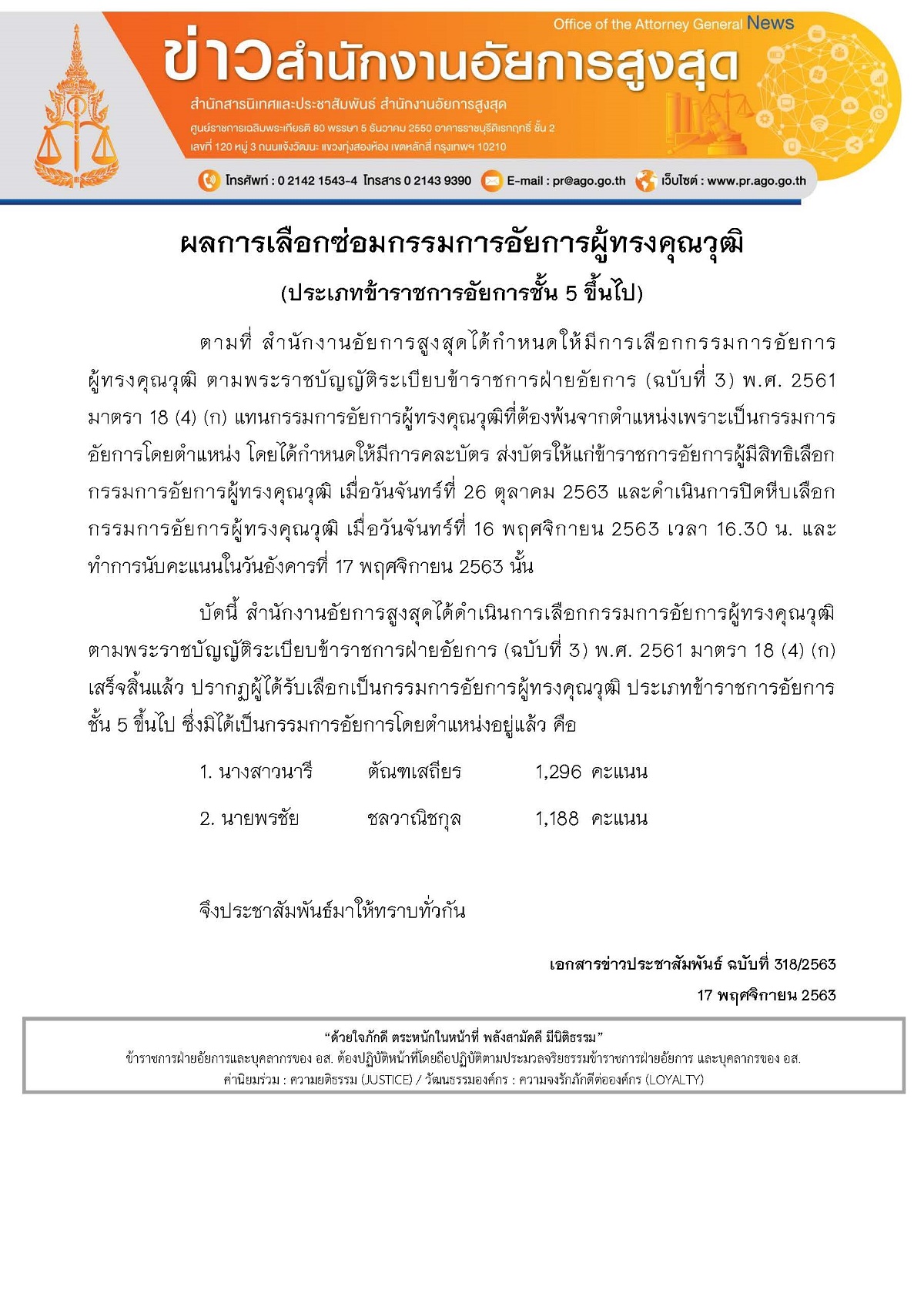 ผลการเลือกซ่อมกรรมการอัยการผู้ทรงคุณวุฒิ (ประเภทข้าราชการอัยการชั้น 5 ขึ้นไป)