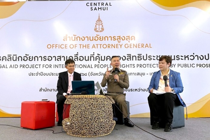 นายโกศลวัฒน์ อินทุจันทร์ยง อธิบดีอัยการ สำนักงานคุ้มครองสิทธิและช่วยเหลือทางกฎหมายแก่ประชาชน กล่าวถึงรายละเอียดการจัดกิจกรรมในครั้งนี้ประกอบด้วย การบรรยายให้ความรู้เกี่ยวกับภารกิจของสำนักงานอัยการสูงสุดในการคุ้มครองสิทธิและช่วยเหลือทางกฎหมายแก่ประชาชน ความรู้เกี่ยวกับภัยออนไลน์ Romance scam หลอกให้รักแล้วโอนเงิน, มิจฉาชีพ, บัญชีม้า, เรื่องเกี่ยวกับสัญชาติและงานทะเบียนราษฎรของคนไทยในต่างแดน, การขออยู่ต่อในราชอาณาจักรไทยของคนต่างชาติ และข้อกฎหมายควรรู้ในการสมรสกับคนต่างชาติพร้อมทั้งการตั้งโต๊ะเปิดรับปรึกษาปัญหากฎหมายเฉพาะราย โดยมีพนักงานอัยการจากสำนักงานอัยการพิเศษฝ่ายคุ้มครองสิทธิประชาชนระหว่างประเทศและสำนักงานอัยการในพื้นที่ รวมทั้งเจ้าหน้าที่จากกองบังคับการตรวจสอบและวิเคราะห์อาชญากรรมทางเทคโนโลยี (บก.ตอท.), สำนักงานตรวจคนเข้าเมือง (ตม.) จังหวัดสุราษฎร์ธานี และกรมการปกครอง ร่วมเป็นวิทยากร