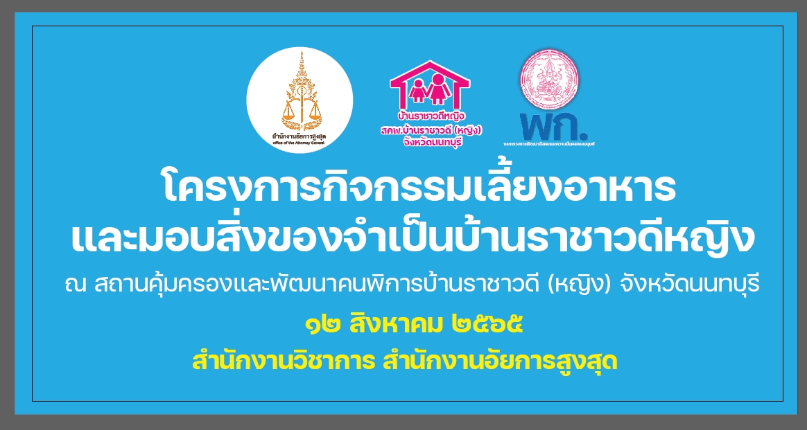 ในวันจันทร์ที่ ๑๙ กันยายน ๒๕๖๕ เวลา ๑๓.๓๐ – ๑๔.๓๐ น. ณ ห้องประชุม ๗๐๒ ชั้น ๗ สำนักงานอัยการสูงสุด อาคารราชบุรีดิเรกฤทธิ์ ศูนย์ราชการเฉลิมพระเกียรติฯ และผ่านสื่ออิเล็กทรอนิกส์ (แอปพลิเคชัน Zoom)
