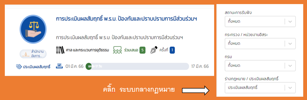 โดยข้าราชการฝ่ายอัยการ หน่วยงานของรัฐ และบุคคลทั่วไป สามารถแสดงความคิดเห็นผ่านทางเว็บไซต์สำนักงานอัยการสูงสุด หรือเว็บไซต์ระบบกลางกฎหมาย