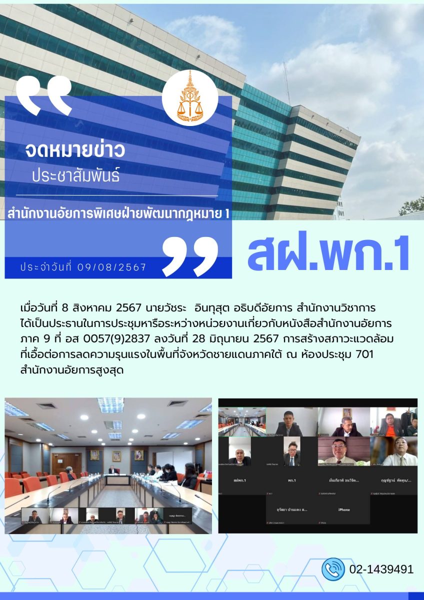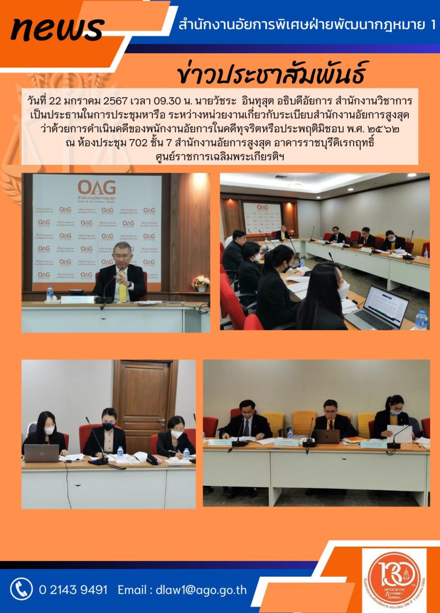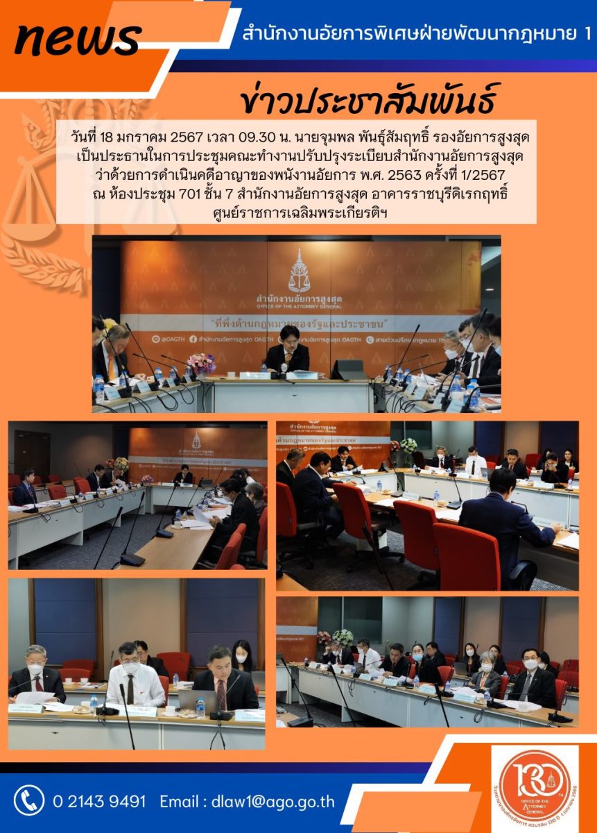 ถ่ายทอดสดจากห้องประชุม ๗๐๑ ชั้น ๗ สำนักงานอัยการสูงสุด อาคารราชบุรีดิเรกฤทธิ์ ศูนย์ราชการเฉลิมพระเกียรติฯ