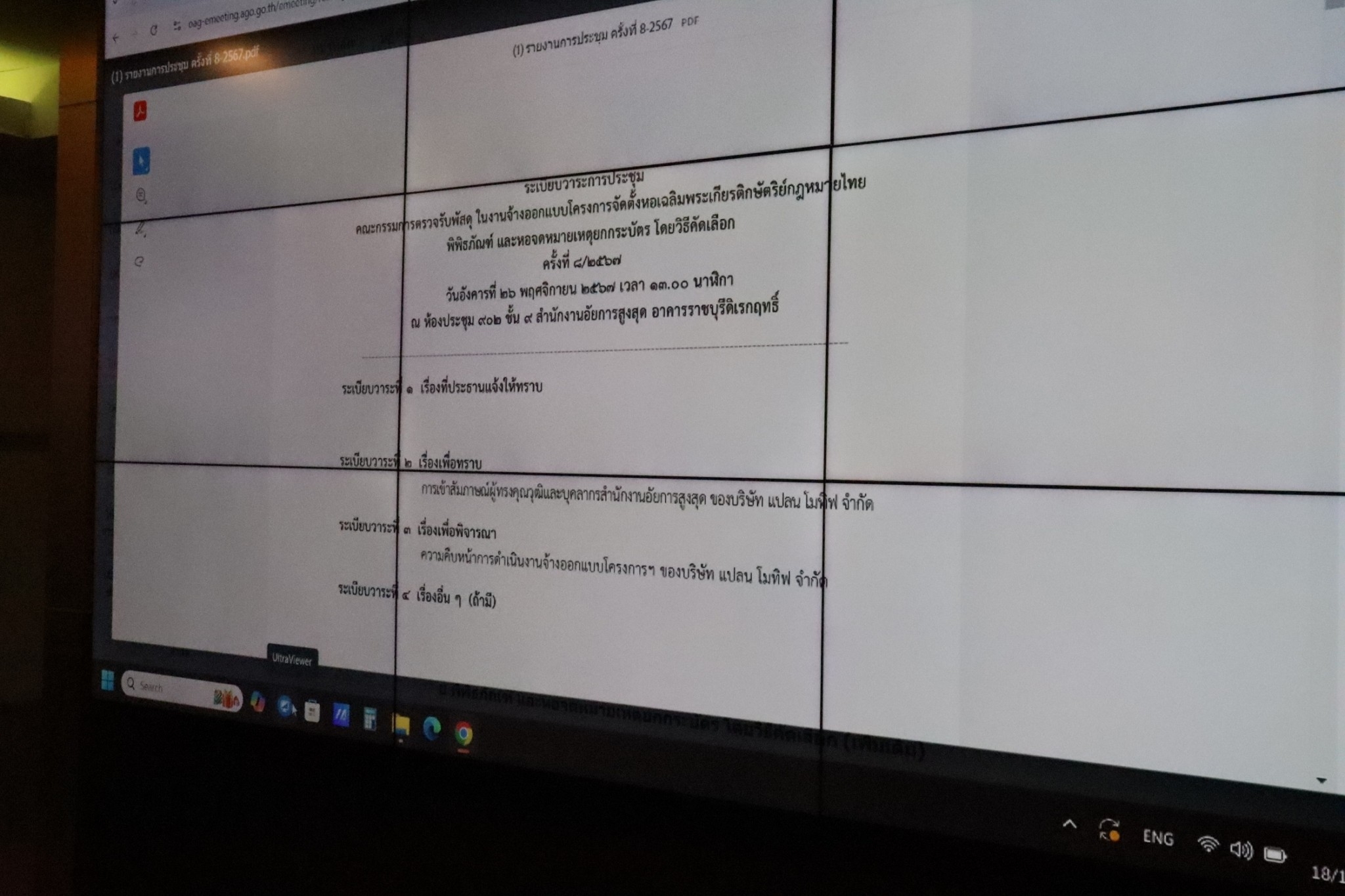 สำนักงานอัยการสูงสุดอาคารหลักเมือง ได้จัดประชมเพื่อติดตามความคืบหน้าในการดำเนินงาน