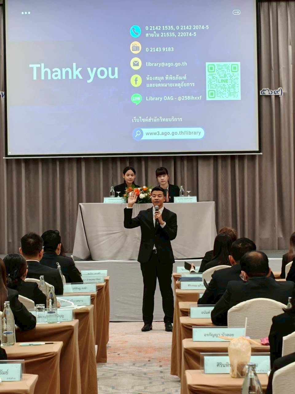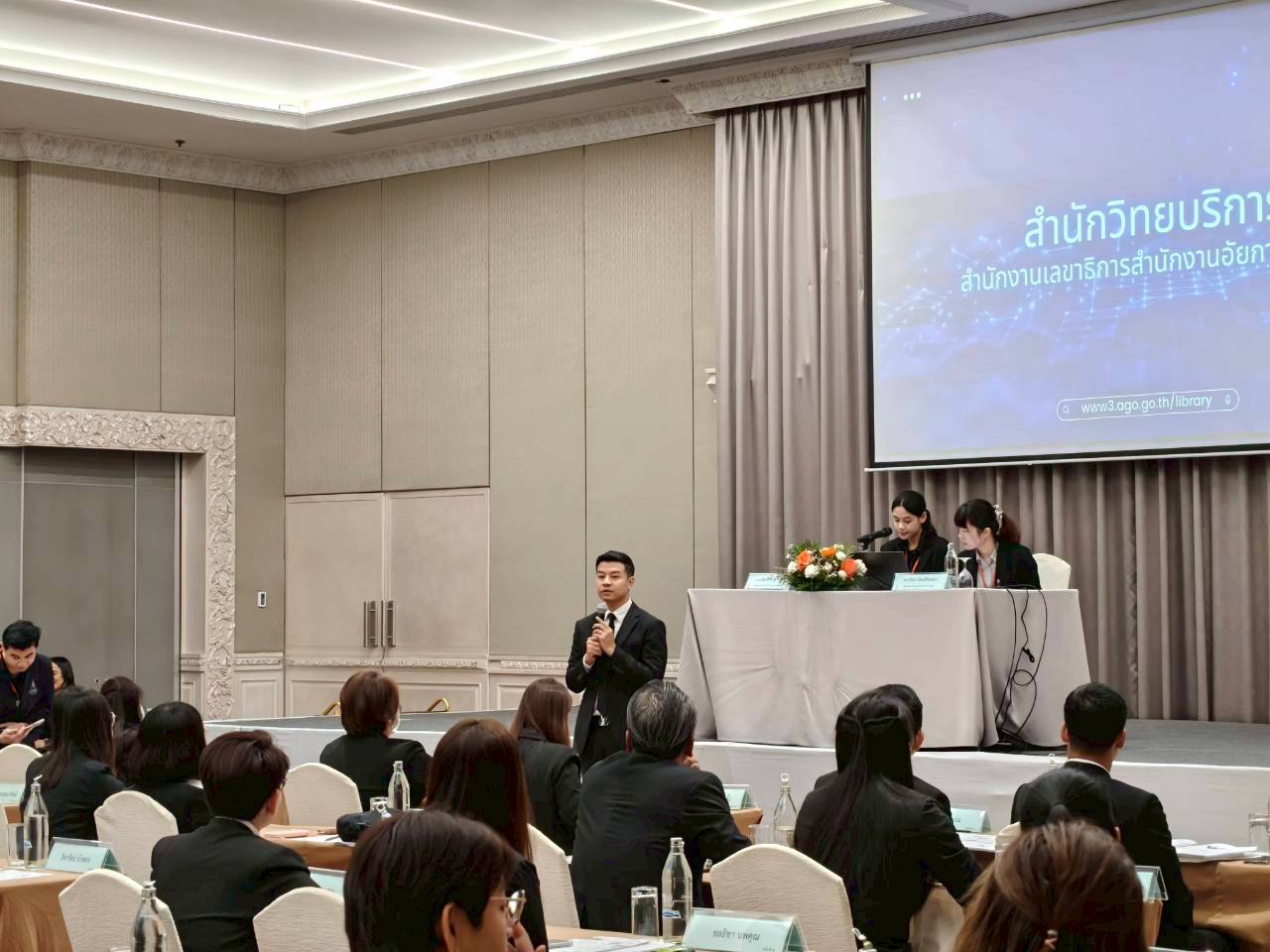 เมื่อวันจันทร์ที่ 16 กุมภาพันธ์ 2569 สำนักวิทยบริการแนะนำช่องทางการให้บริการระบบต่าง ๆ ของห้องสมุดสำนักงานอัยการสูงสุด ได้แก่ ระบบห้องสมุดอัตโนมัติ ELIB, ระบบ OAG Smart Library และระบบ Hibrary แก่ผู้เข้ารับการอบรมโครงการฝึกอบรมข้าราชการธุรการ “หลักสูตรการฝึกอบรมข้าราชการธุรการระดับกลาง” รุ่นที่ 8 (พ.ศ. 2569) ณ โรงแรมดิเอมเมอรัลด์ ถนนรัชดาภิเษก เขตดินแดน กรุงเทพมหานคร โดยมีนางสาวกชกร เจริญศิลป์ และนางสาวลักษมี แปงยะ เป็นวิทยากร