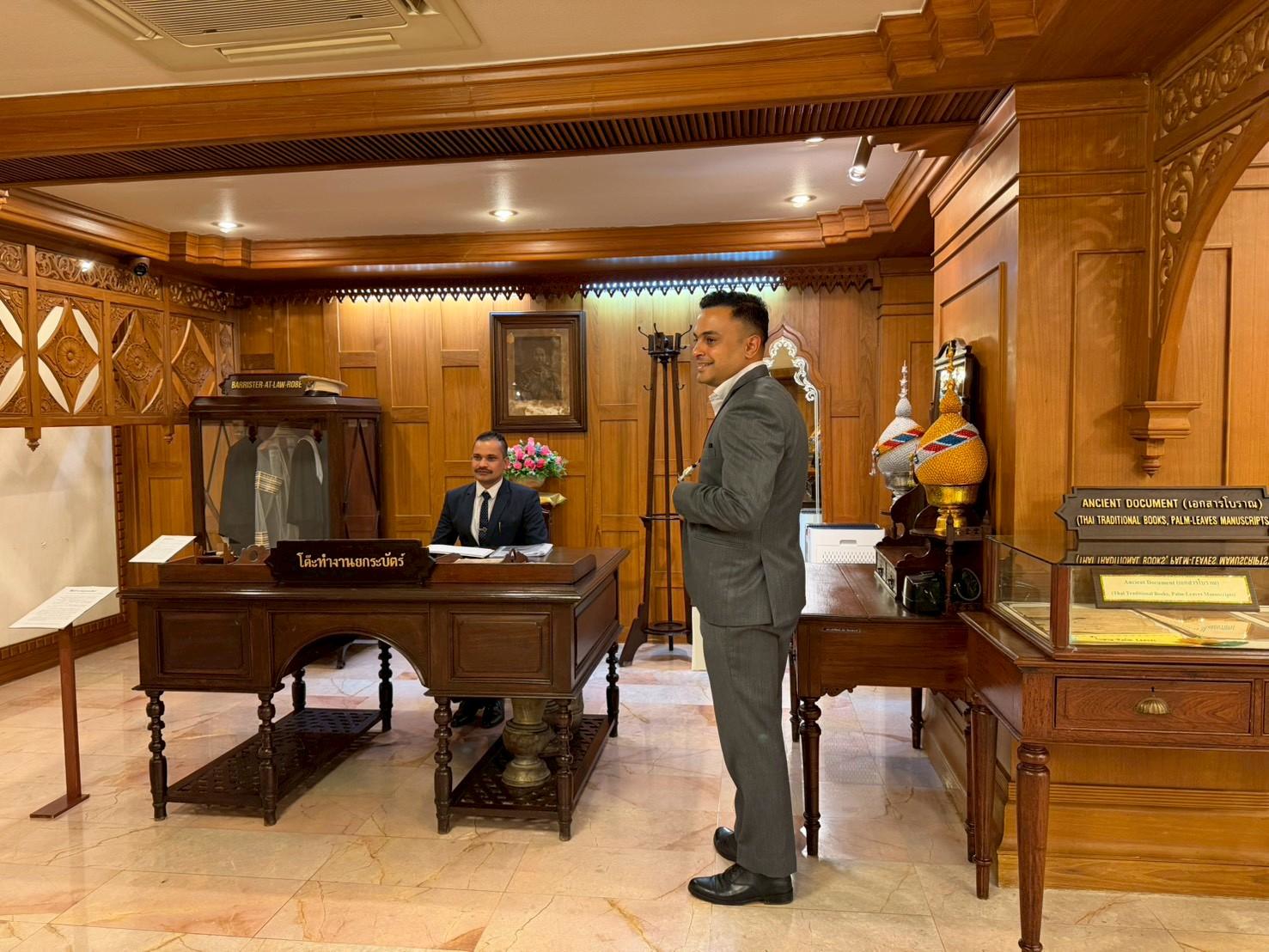 เจ้าหน้าที่ให้การต้อนรับผู้เข้าเยี่ยมชมพิพิธภัณฑ์อัยการไทย จากสหพันธ์สาธารณรัฐประชาธิปไตยเนปาล
