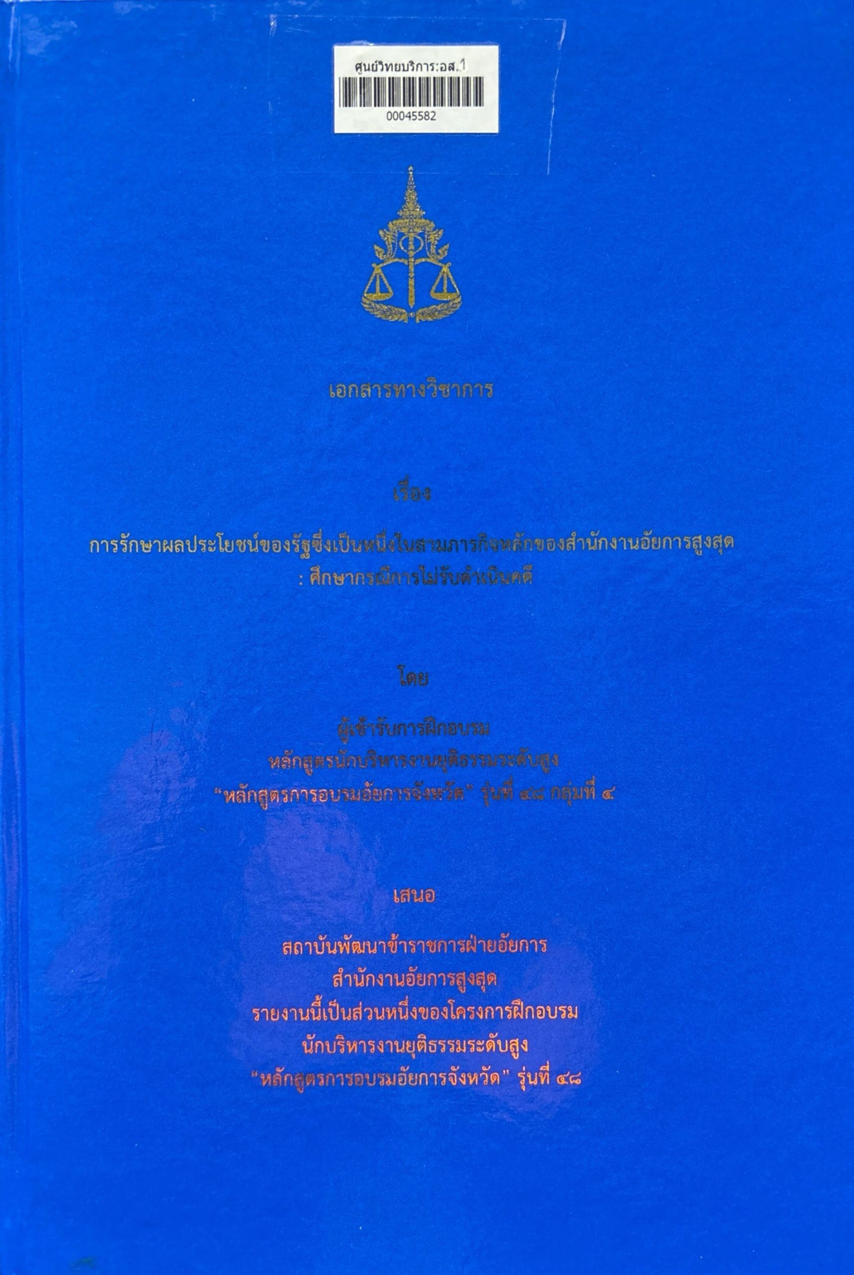 การรักษาผลประโยชน์ของรัฐซึ่งเป็นหนึ่งในสามภารกิจหลักของสำนักงานอัยการสูงสุด : ศึกษากรณีการไม่รับดำเนินคดี : เอกสารทางวิชาการ