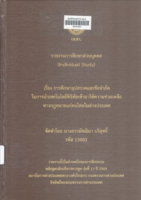 การศึกษาอุปสรรคและข้อจำกัดในการนำเทคโนโลยีดิจิทัลเข้ามาให้ความช่วยเหลือทางกฎหมายแก่คนไทยในต่างประเทศ : รายงานการศึกษาส่วนบุคคล