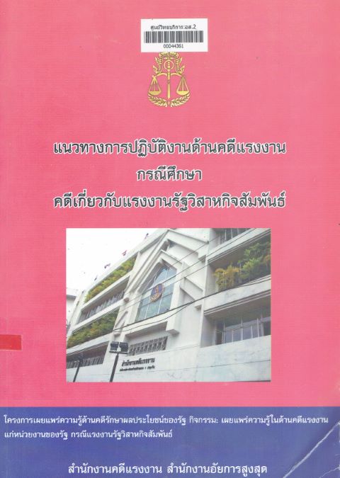 แนวทางการปฏิบัติงานด้านคดีแรงงาน กรณีศึกษาคดีเกี่ยวกับการคุ้มครองแรงงานและประกันสังคม