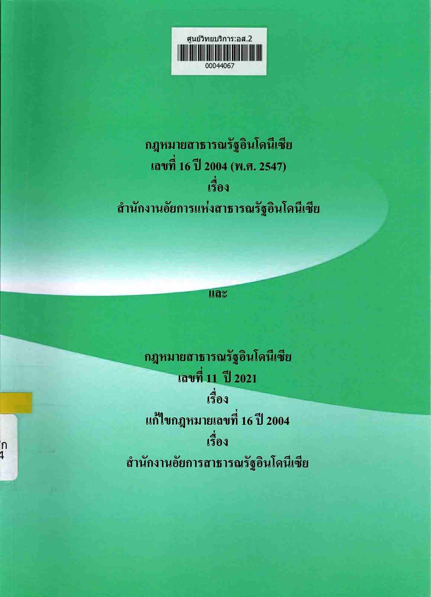 กฎหมายของสาธารณรัฐอินโดนีเซีย เลขที่ 16 ปี 2004 (พ.ศ. 2547) เรื่อง สำนักงานอัยการแห่งสาธารณรัฐอินโดนีเซีย เล่ม 1