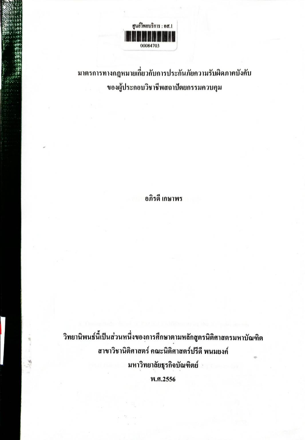 มาตรการทางกฎหมายเกี่ยวกับการประกันภัยความรับผิดภาคบังคับของผู้ประกอบวิชาชีพสถาปัตยกรรมควบคุม
