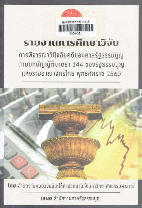 การพิจารณาวินิจฉัยคดีของศาลรัฐธรรมนูญตามบทบัญญัติมาตรา 144 ของรัฐธรรมนูญแห่งราชอาณาจักรไทย พุทธศักราช 2560 : รายงานการศึกษาวิจัย