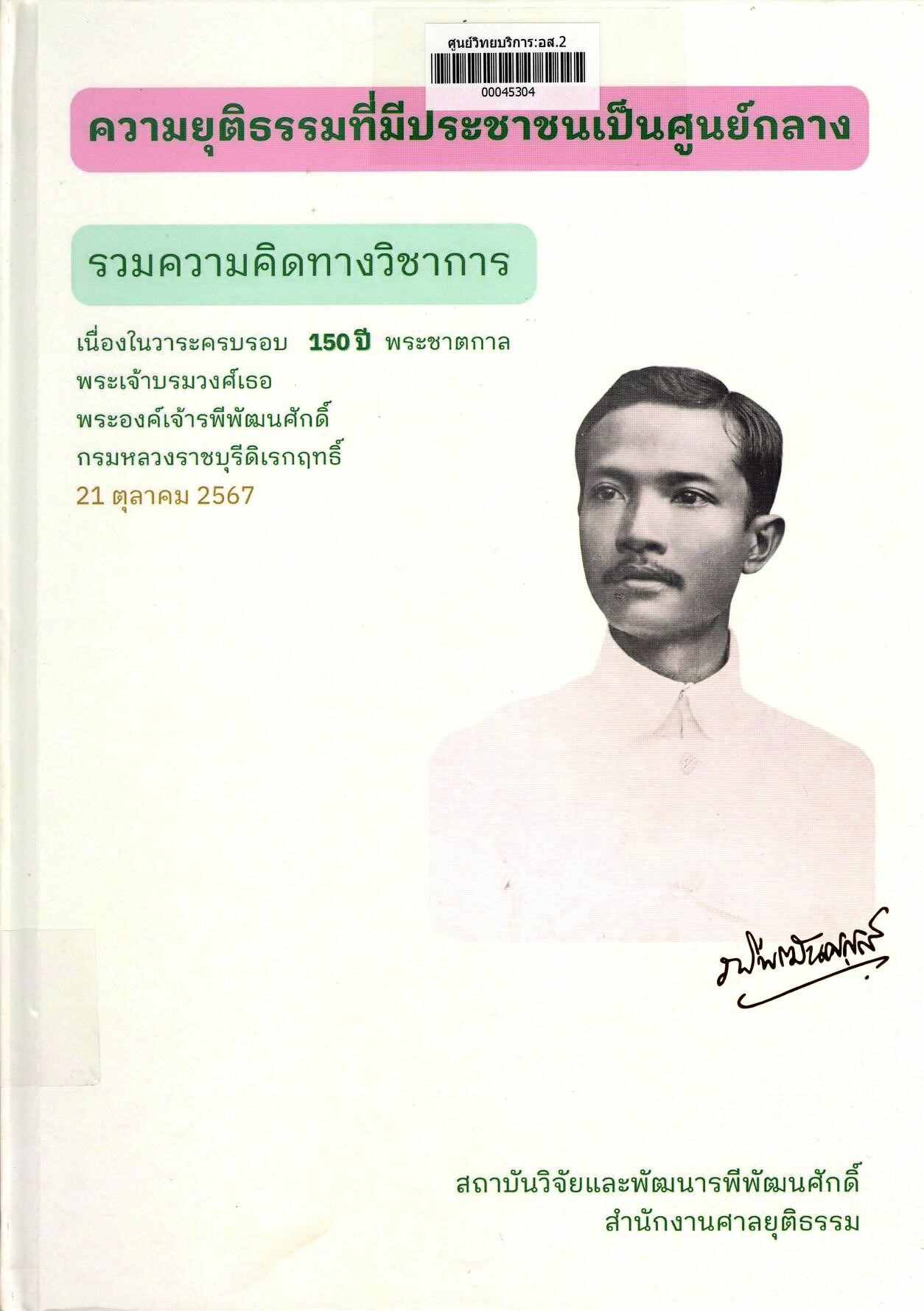 ความยุติธรรมที่มีประชาชนเป็นศูนย์กลาง รวมความคิดเห็นทางวิชาการ เนื่องในวาระครบรอบ 150 ปี พระชาตกาล พระเจ้าบรมวงศ์เธอ พระองค์เจ้ารพีพัฒนศักดิ์ กรมหลวงราชบุรีดิเรกฤทธิ์ 21 ตุลาคม 2567