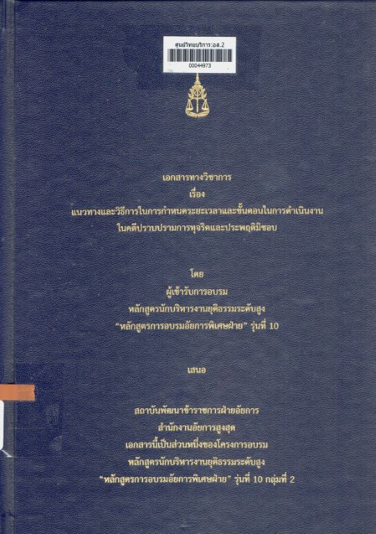 แนวทางและวิธีการในการกำหนดระยะเวลาและขั้นตอนในการดำเนินงานในคดีปราบปรามการทุจริตและประพฤติมิชอบ : เอกสารทางวิชาการ