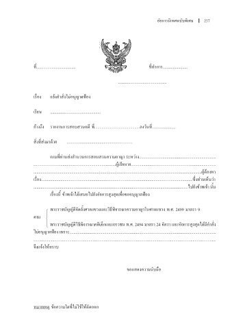 อ้างถึงอ้างถึง รายงานการสอบสวนคดี ที่............................................ลงวัน ที่.......................
