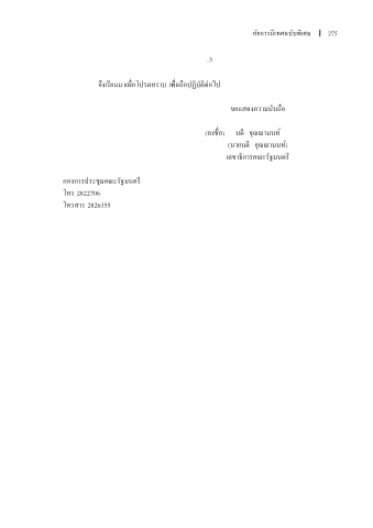 ิ อััยการนิเทศฉบัับัพิิเศษ 275 -3 จึงเรียนมาเพื่อโปรดทราบเพื่อถือปฏิบัติต่อไป ขอแสดงความนับถือ (ลงชื่อ) บดีจุณณานนท์ (นายบดีจุณณานนท์) เลขาธิการคณะรัฐมนตรี กองการประชุมคณะรัฐมนตรี โทร2822706 โทรสาร2826355