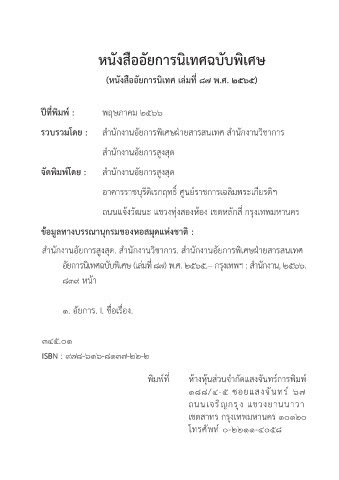 ข้อมูลทางบรรณานุกรมของหอสมุดแห่งชาต : การรวบรวมระเบียบ หนังสือเวียน ปัญหาและมติที่ประชุมตามรายงานการประชุมอัยการพิเศษประจำเขต ในลักษณะ