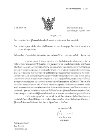 สิ่งที่ส่งมาด้วย ส�าเนาหนังสือส�านักงานปลัดส�านักนายกรัฐมนตรีที่นร1310/ว2325ลงวันที่11มีนาคม2540