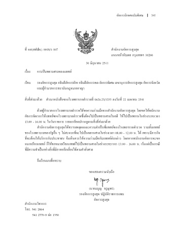 สิ่งที่ส่งมาด้วย ส�าเนาหนังสือของโรงพยาบาลต� า รวจที่ รวจที่ 0626.23/1253 ลงวันที่ เมษายน 2541