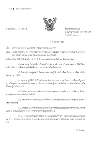 เรื่อง แนวทางปฏิบัติการดําเนินคดีอาญา กรณีแพทยเปนผูถูกกลาวหา